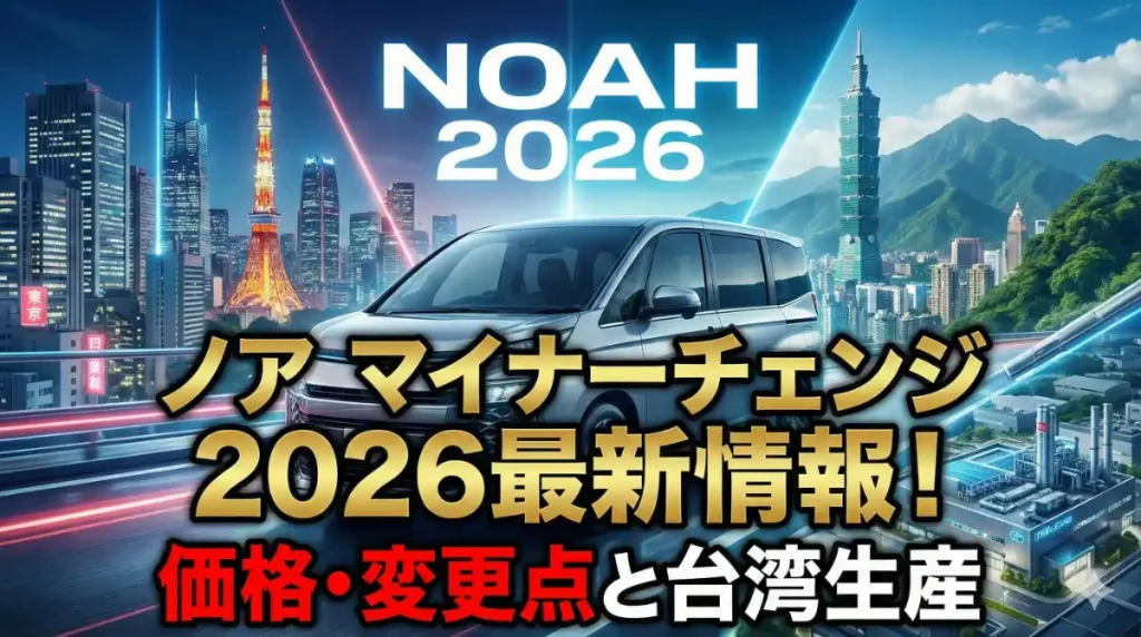 みなさん、いま最も注目されているミニバンといえば何でしょうか。 やはりトヨタのノアですよね。特にこれから購入を検討されている方にとっては、ノアのマイナーチェンジが2026年にどう影響するのか、そして台湾での生産開始に関する情報や納期の改善がい... -